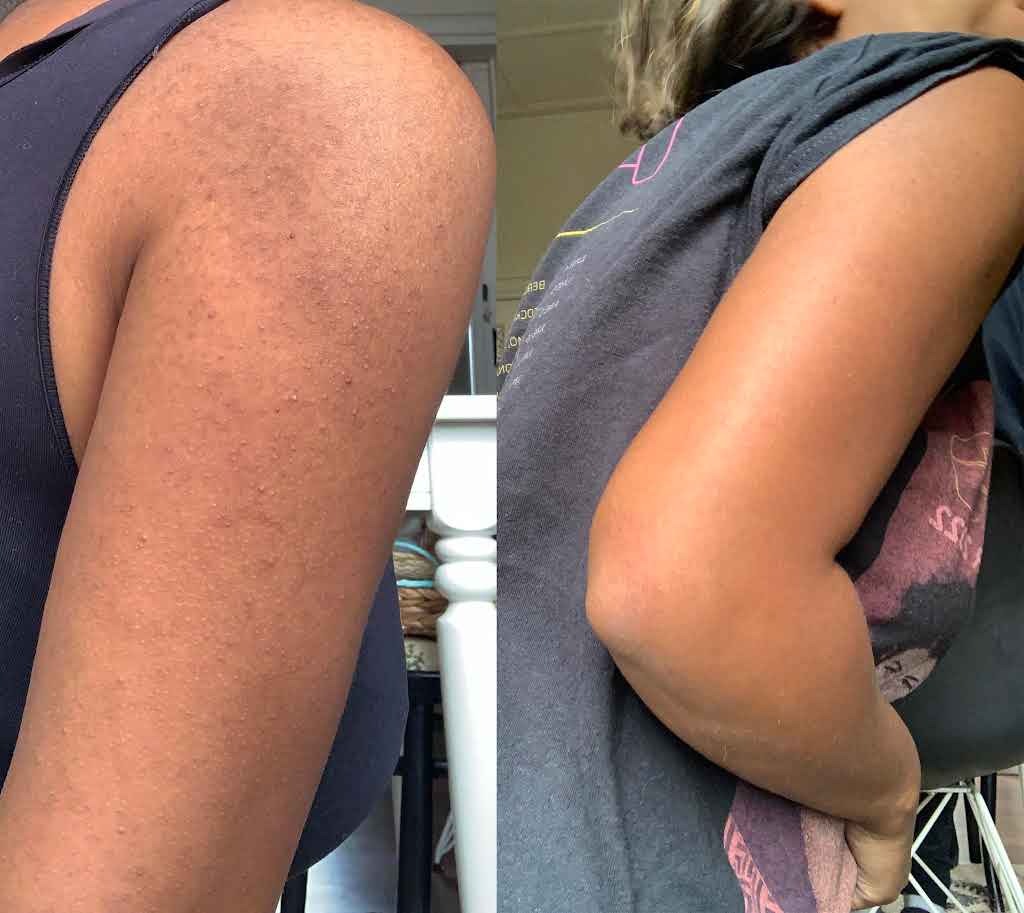 ✔️ Smooths rough, bumpy “KP” on arms, thighs & Back of thighs